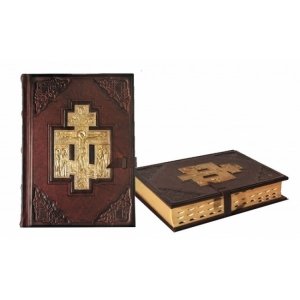 Подарочная книга в кожаном переплете "Библия с крестом"