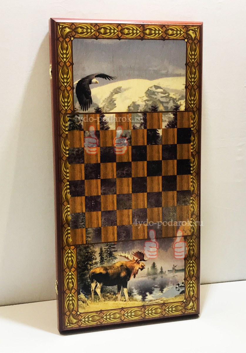 -Игровая доска с полем для игры в шашки, 1шт., лиственница