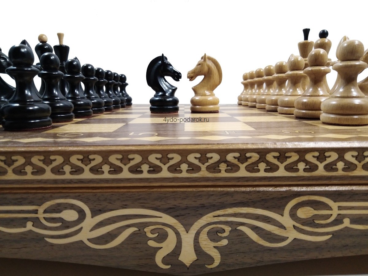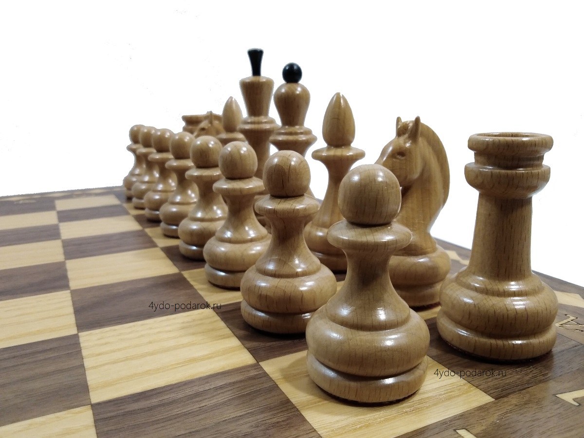 Специфика изготовления и обработки фигур: шахматные фигуры изготовлены из бука с применением точнейшей объёмной лазерной резьбы (уникальная 3d форма коня не даст Вам в этом усомниться) и отшлифованы. Внутри каждой фигуры встроен металлический утяжелитель, а основание фигур имеет приятную тканевую подклейку, что обеспечивает сохранность игрового поля, а также отсутствие шума при передвижении по нему.