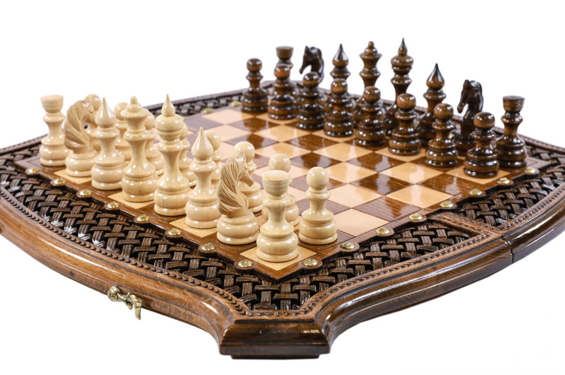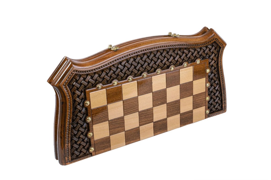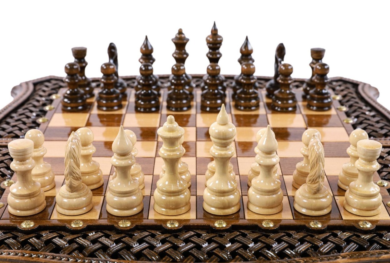 Шахматы-нарды с плетёнкой с авторским оформлением