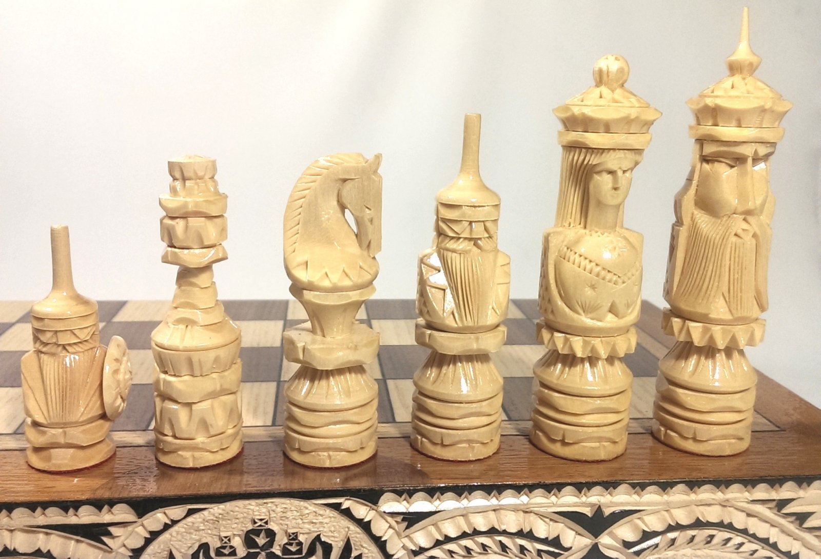 Шахматный комплект выполнен на высоком уровне с использованием ценных сортов дерева. Тщательная проработка резных деталей и мастерство резчиков позволяют долго любоваться этим произведением шахматного искусства.