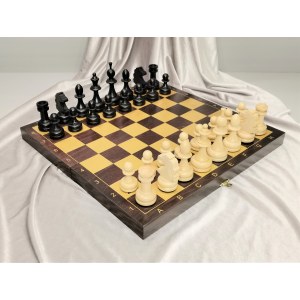 Шахматная доска: классическая с внутренним тканевым ложементом под фигуры.