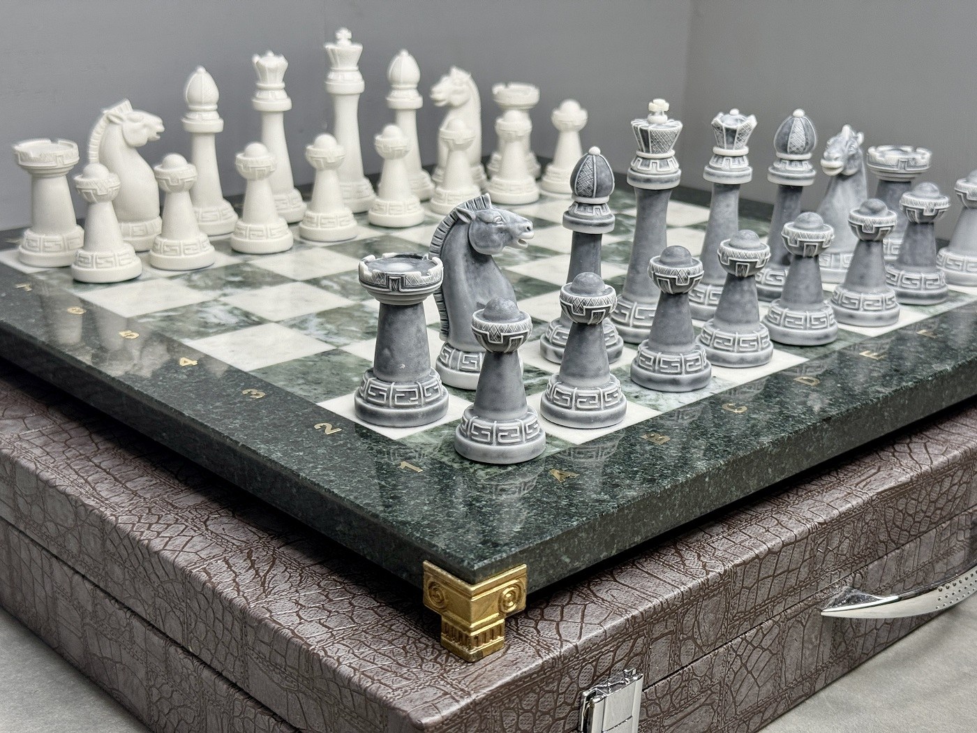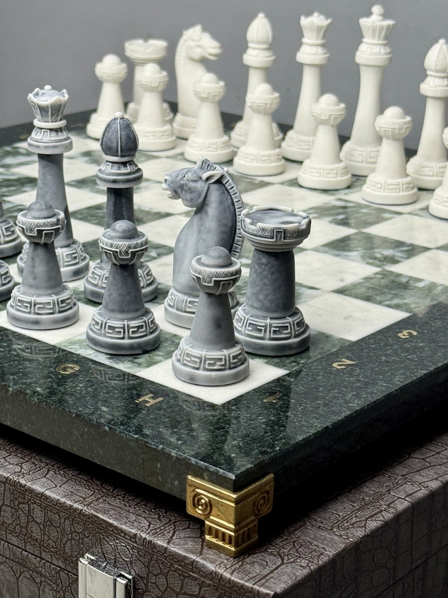 Настольные шахматы из камня с оригинальными фигурами станут прекрасным подарком на день рождения мужчине, шахматисту или просто любителю игры. В комплекте футляр из экокожи.