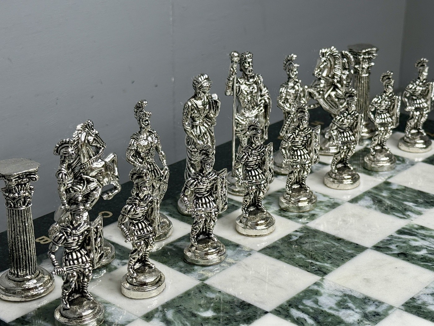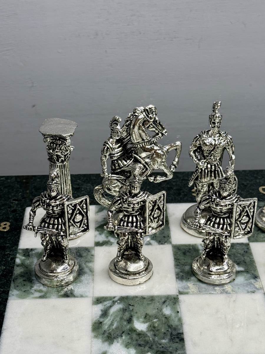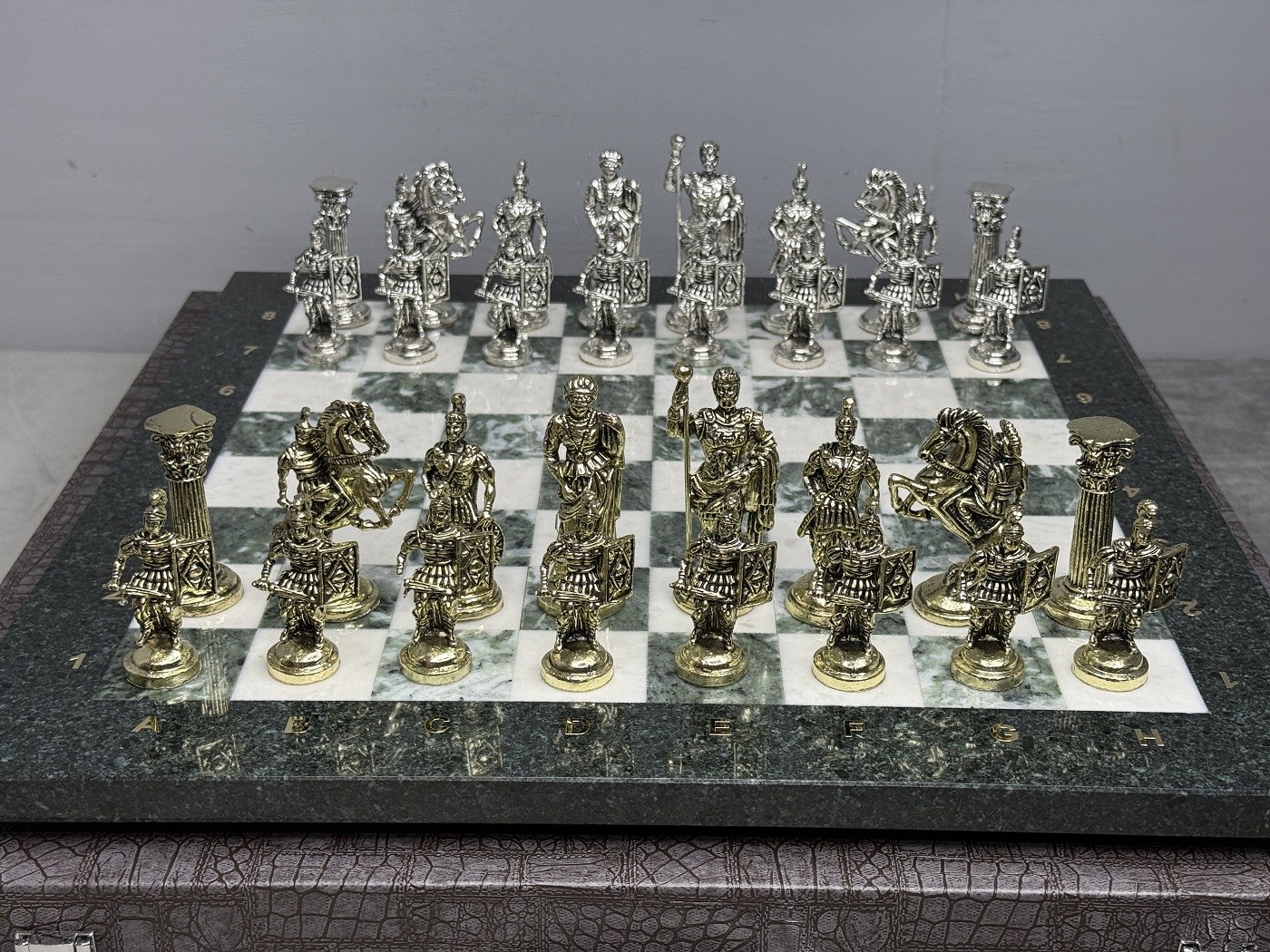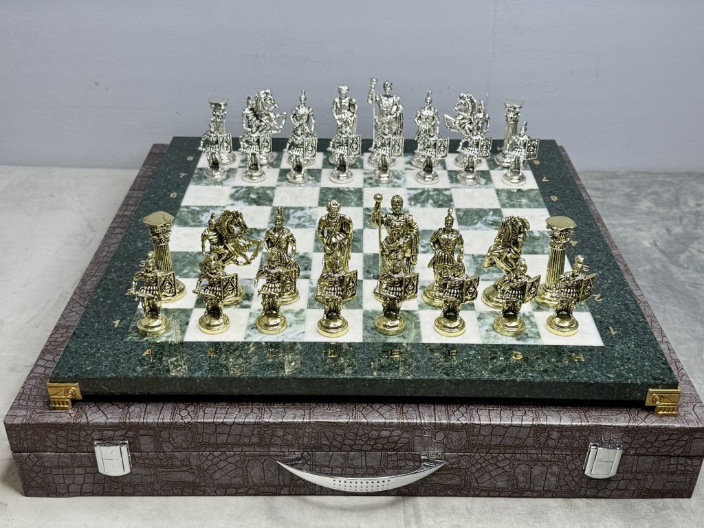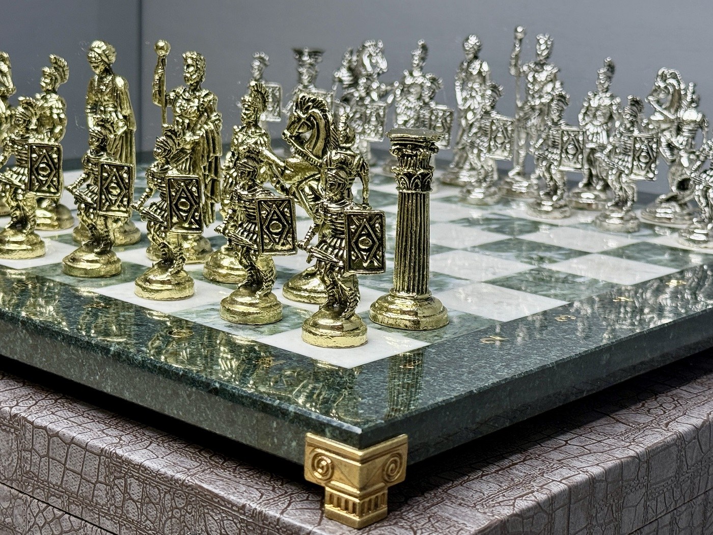 Шахматы изготовлены вручную из натурального камня, каждое изделие имеет индивидуальный оттенок и рисунок. Допускается наличие естественных прожилок в камне, размеры могут немного отличаться.